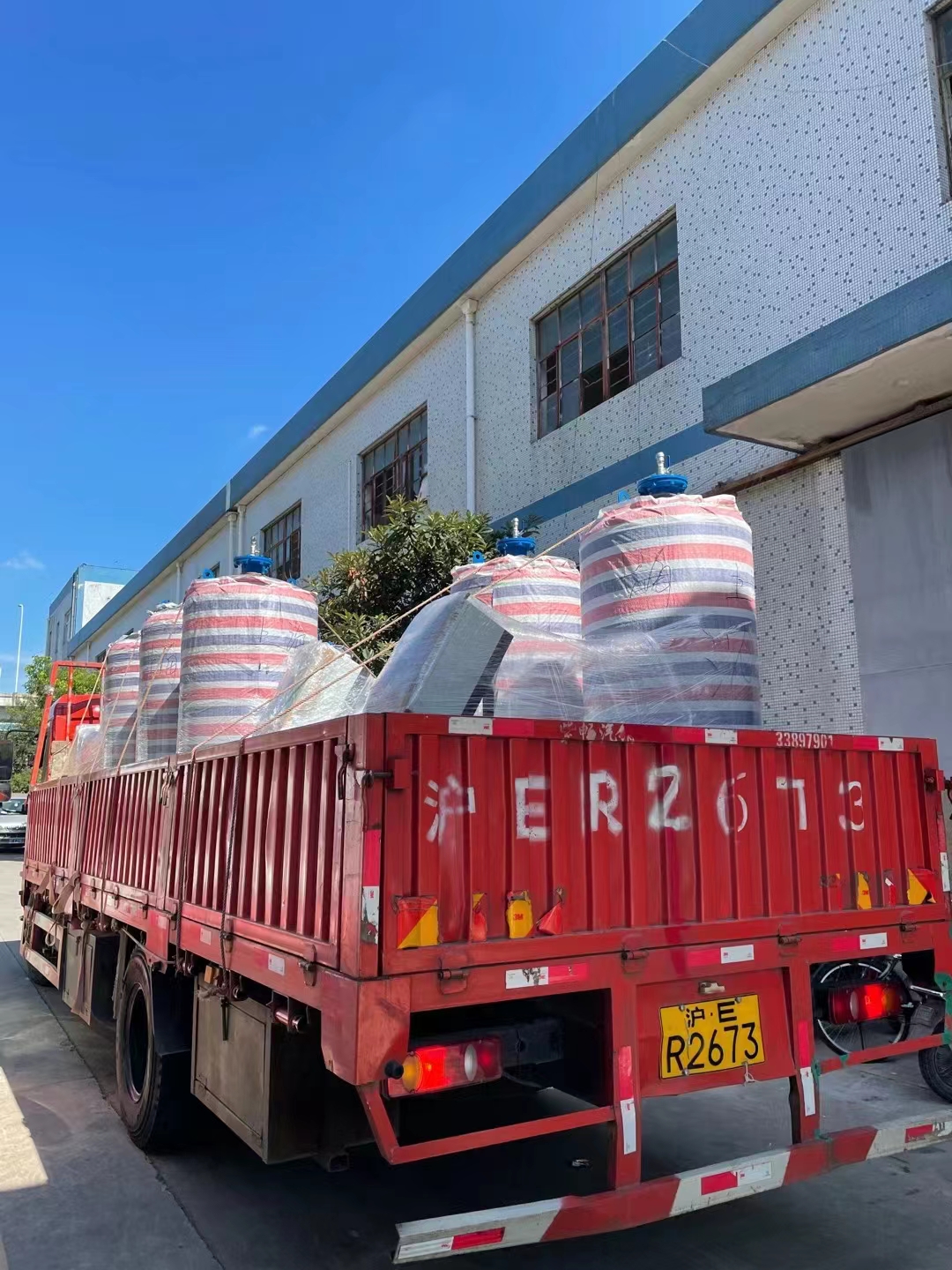 成都項目:一批智能砂濾裝置和不銹鋼水箱及加藥裝置裝車發(fā)貨完成,上海奧棟承諾必達(dá)!